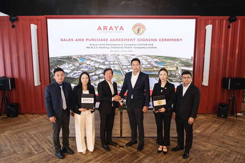 Bangkok, 13 November 2025 – MR. D.I.Y. Holding (Thailand) Public Company Limited, Thailand’s leading home improvement and lifestyle retailer, today announced the signing of a Sales and Purchase Agreement (SPA) with Araya Land Development Company Limited for the acquisition of a 160 rai (256,000 sq.m,) land plot within the ARAYA – The Eastern Gateway project.